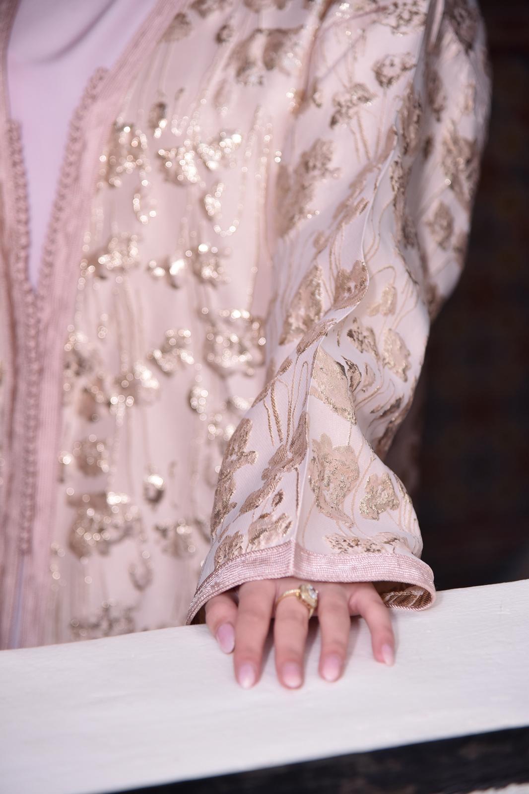 Entdecke die Mahasen Abaya, inspiriert von der zeitlosen Eleganz traditioneller marokkanischer Kaftans und Abayas. Hergestellt aus hochwertigem, einzigartigem Brokatstoff, vereint dieses Meisterwerk traditionelle Handwerkskunst mit modernem Design. Jede Abaya ist ein wahres Unikat – in Limited Edition – und verspricht dir einen exklusiven Look, der sowohl luxuriös als auch unverwechselbar ist. Tauche ein in die Welt von Mahasen und erlebe zeitlose Schönheit auf höchstem Niveau.