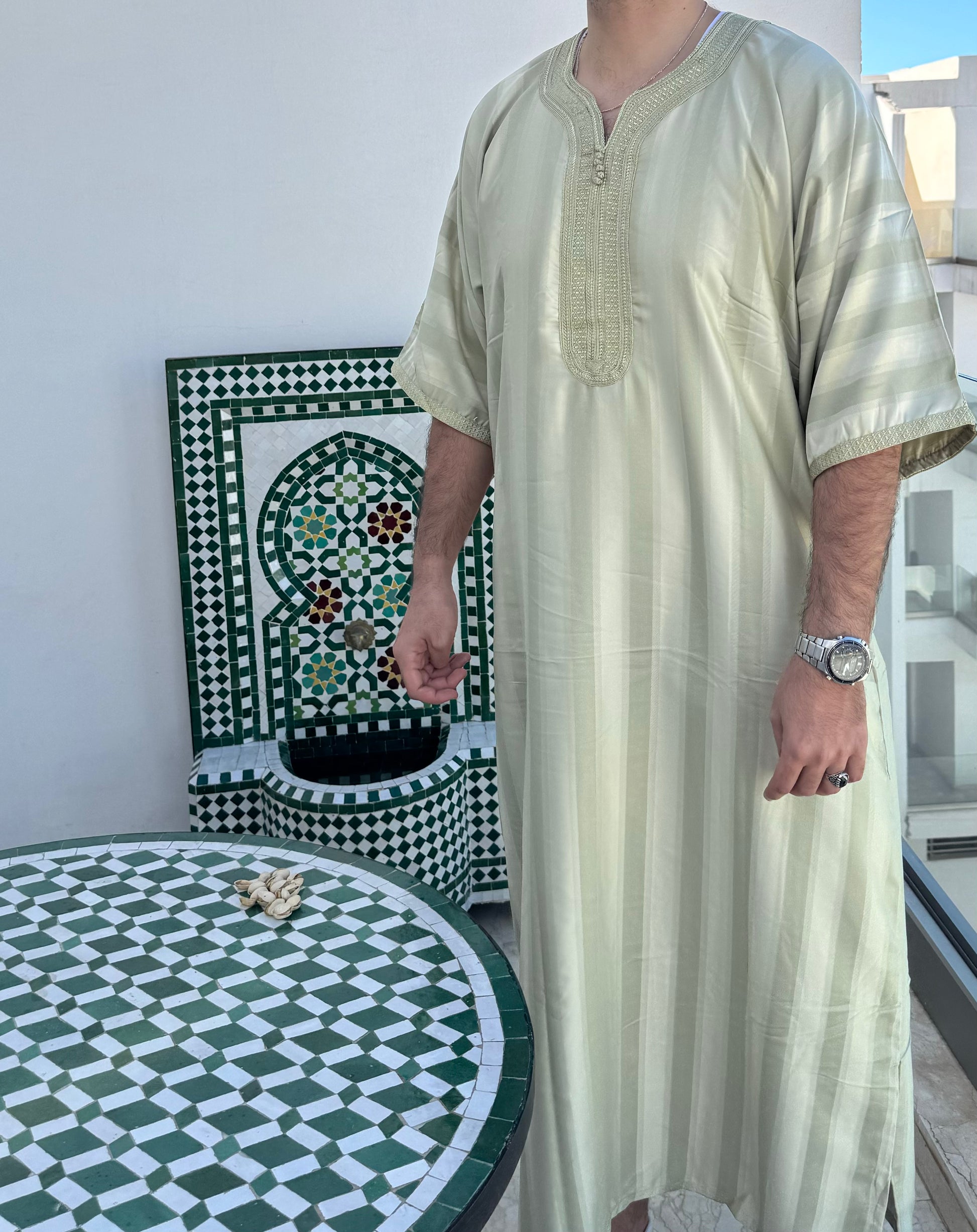 Unsere hochwertigen Gandouras für Männer werden aus erstklassigen Stoffen mit traditionellen Techniken gefertigt und verbinden zeitlose Eleganz mit modernem Stil.