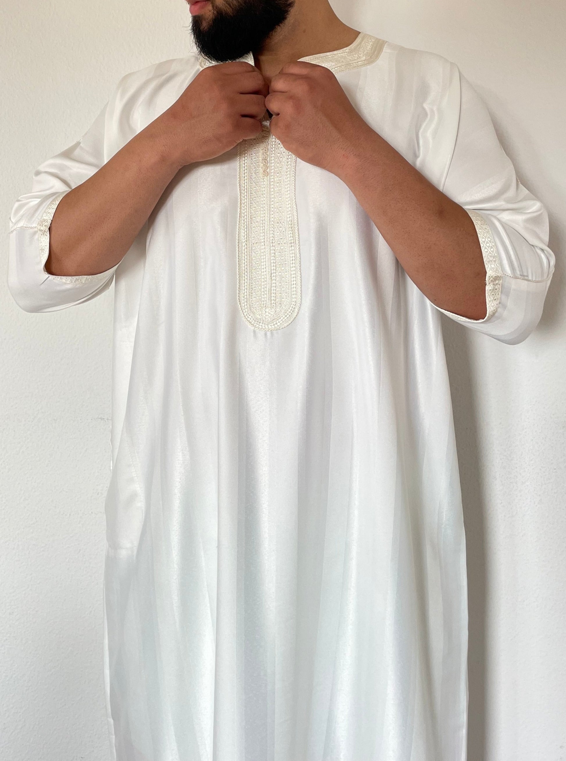 Unsere hochwertigen Gandouras für Männer werden aus erstklassigen Stoffen mit traditionellen Techniken gefertigt und verbinden zeitlose Eleganz mit modernem Stil.